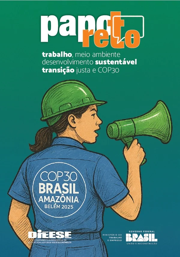 Em um momento em que o Brasil se prepara para sediar a COP30, em Belém (PA), o DIEESE lançou a cartilha “Papo Reto: Desenvolvimento Sustentável, Transição Justa e COP30”, produzida em parceria com o Ministério do Trabalho e Emprego (MTE). O material apresenta, em linguagem acessível, os principais conceitos e desafios que relacionam mudanças climáticas, trabalho e justiça social, destacando o papel central dos sindicatos na formulação de políticas públicas e na defesa dos direitos dos trabalhadores diante das transformações ecológicas e produtivas.