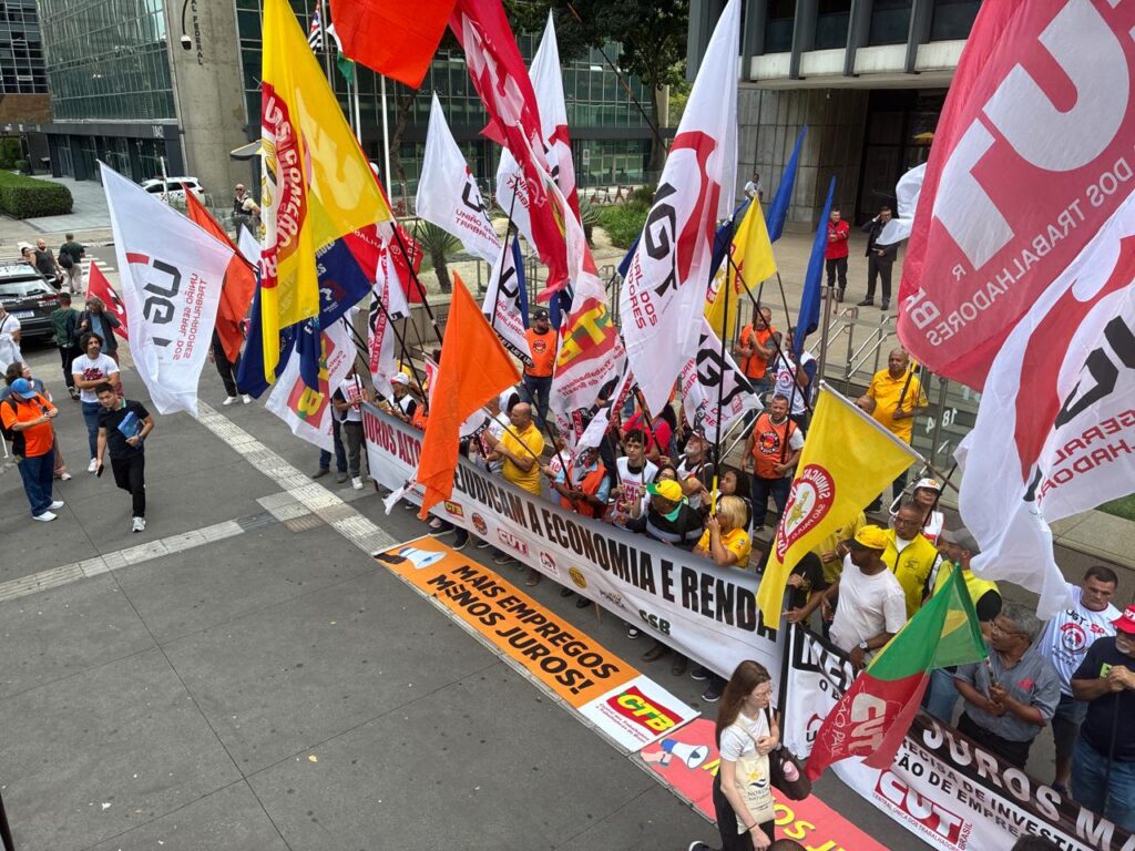 Centrais protestam na Paulista contra juros de 14,75% e cobram redução para estimular empregos, renda e crescimento econômico