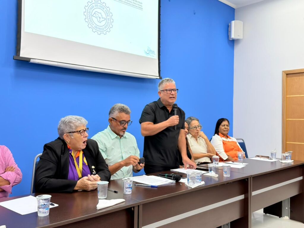 Edson Dias Bicalho, secretário-geral da FEQUIMFAR e presidente do Sindicato dos Químicos de Bauru e Região, coordenou a mesa de abertura, que também contou com a presença de Andrea Angerami Gato, secretária-geral do Sindnapi.