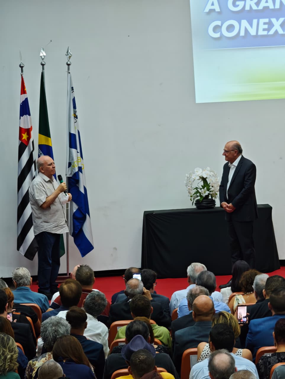 O evento destaca o palestrante Geraldo Alckmin, vice-presidente da República, que contribui com análises institucionais e políticas públicas voltadas à proteção da saúde no trabalho.
