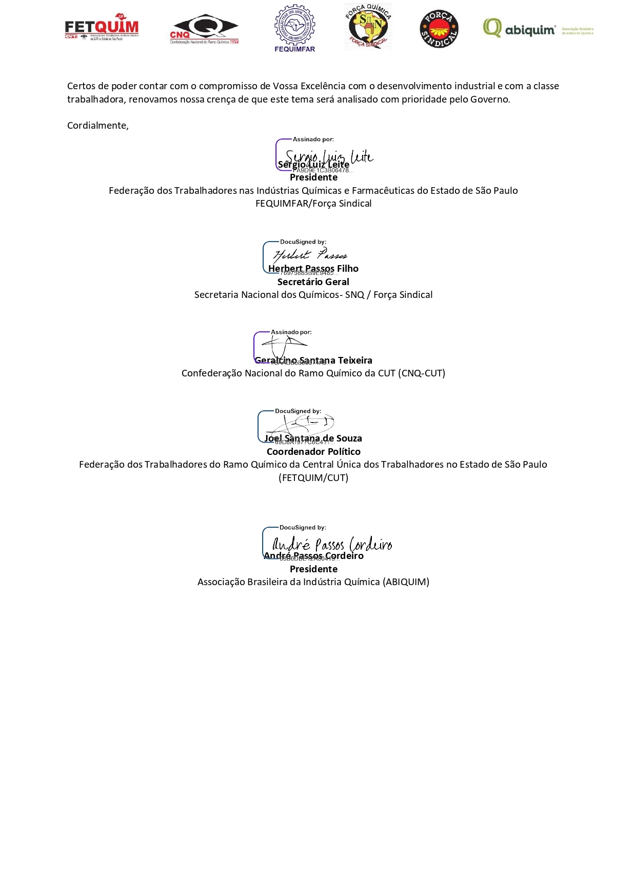 A FEQUIMFAR, SNQ, CNQ, FETQUIM e a ABIQUIM destacam, portanto, que a indefinição sobre o regime compromete investimentos, planejamento produtivo e a competitividade da indústria química nacional.