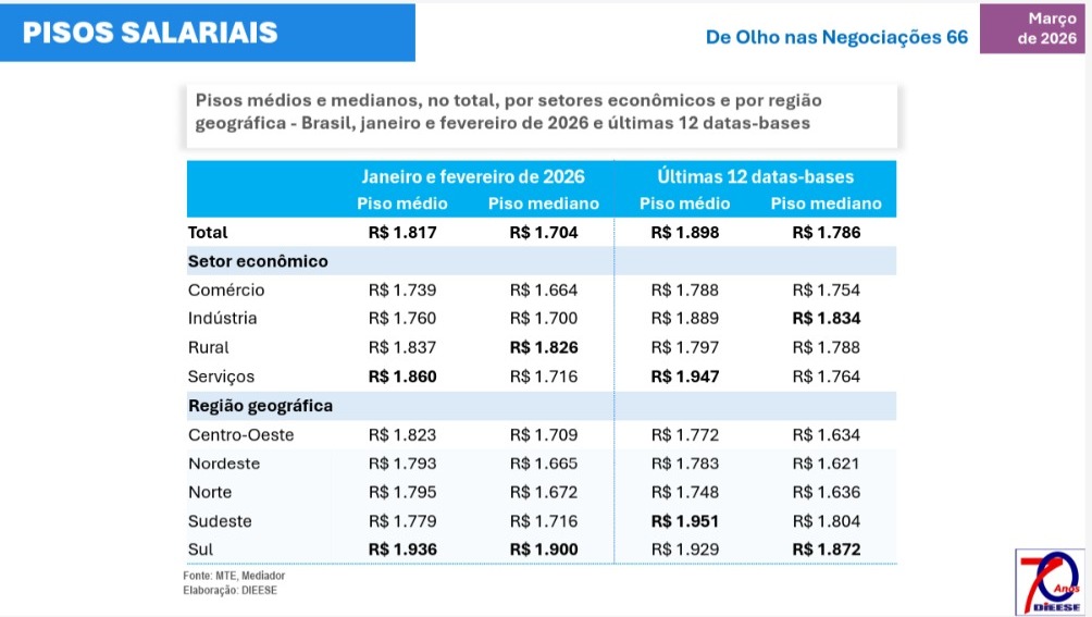 Apesar disso, os pisos salariais permanecem baixos, com média de R$ 1.817 no início do ano, o que limita o impacto distributivo dos reajustes conquistados.